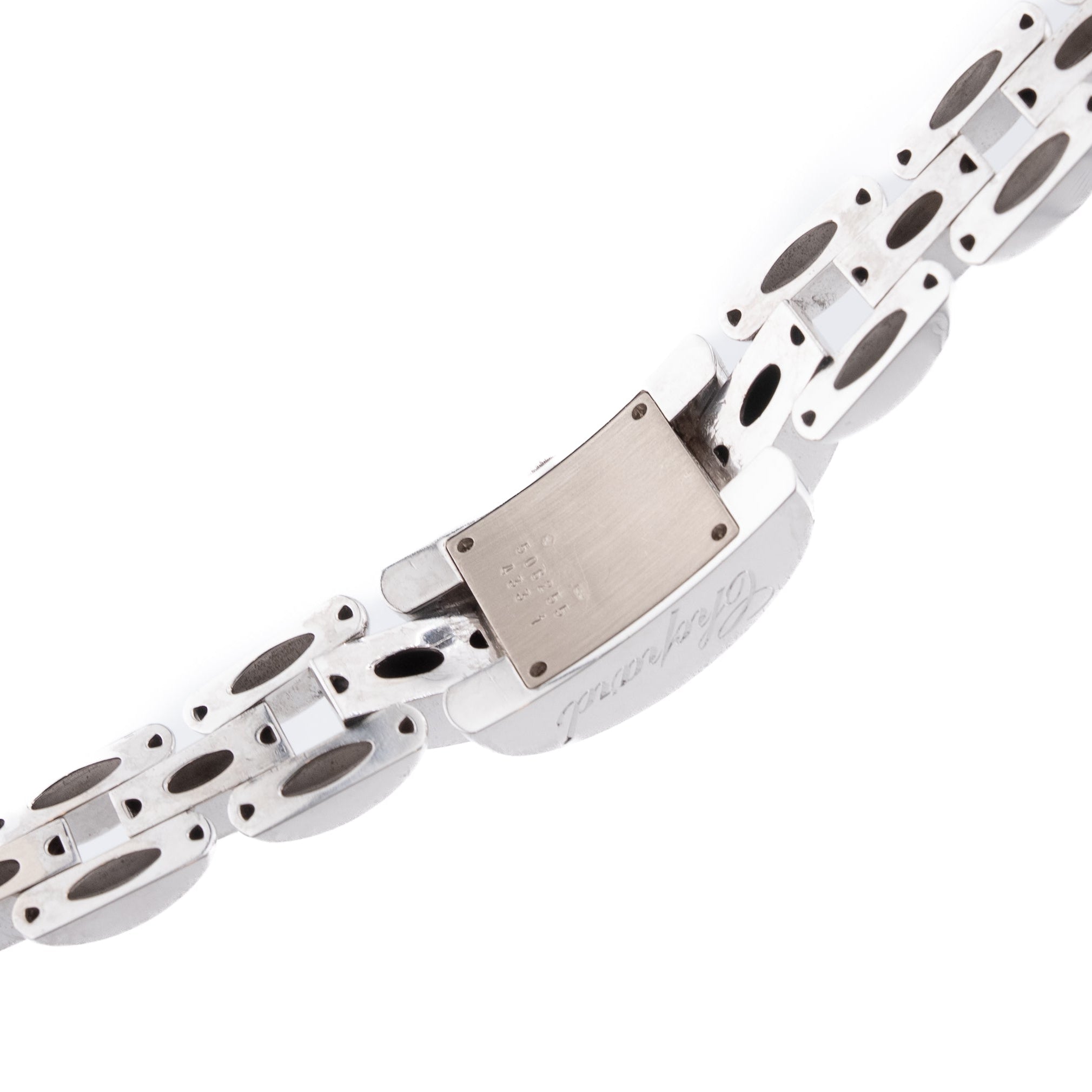 Powered by a precise quartz movement, the watch ensures reliable performance with minimal maintenance. Attached to a matching white-gold bracelet with sculpted links, La Strada secures with a jewelry clasp. With sapphire crystal protection and water resistance rated for everyday wear, this piece combines high jewelry brilliance with the practicality of a refined dress watch — ideal for someone who appreciates both sophistication and sparkle.