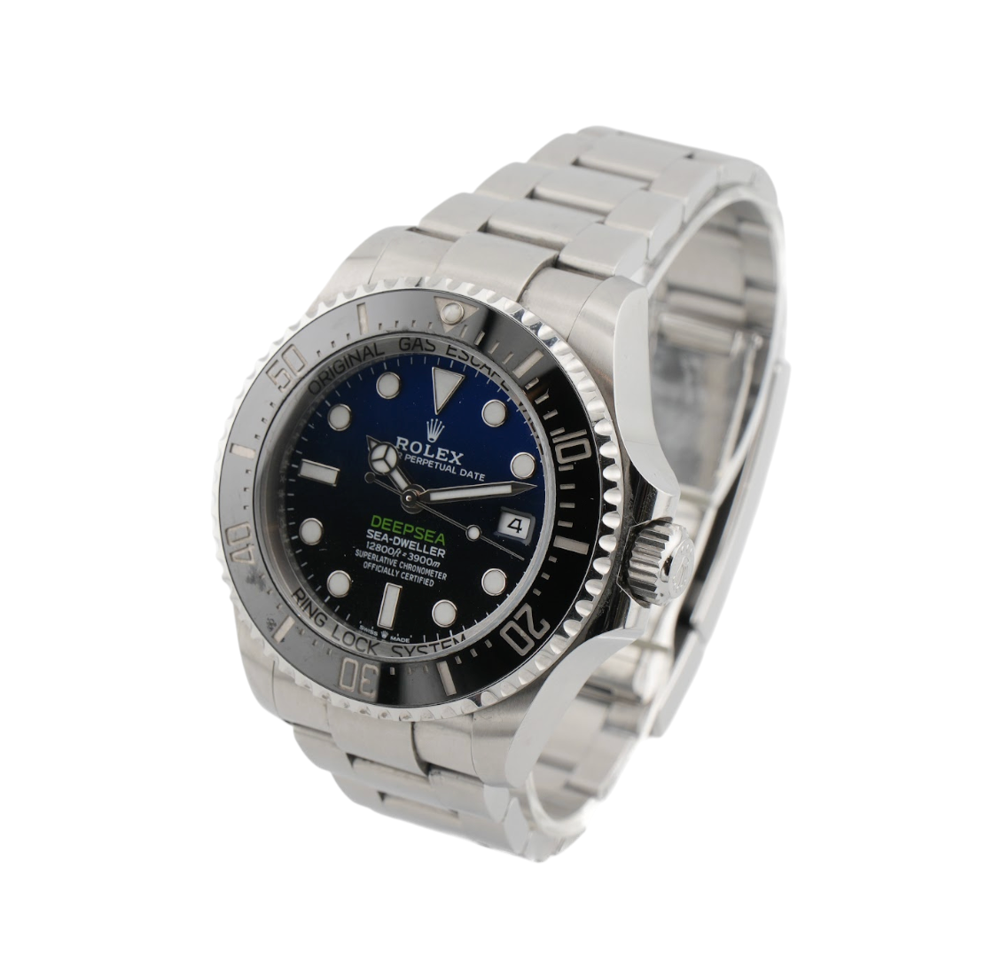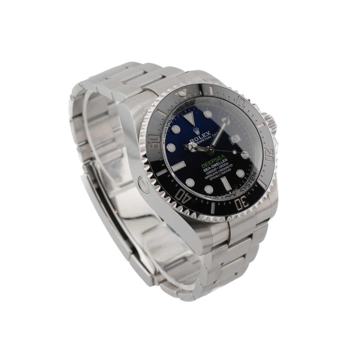 The 44mm Oystersteel case, equipped with a helium escape valve and Ringlock System, ensures durability under immense pressure, while the Chromalight display guarantees superior legibility in the darkest conditions. Combining cutting-edge technology with bold aesthetics, the Deepsea James Cameron stands as a true icon of deep-sea exploration and Rolex innovation.