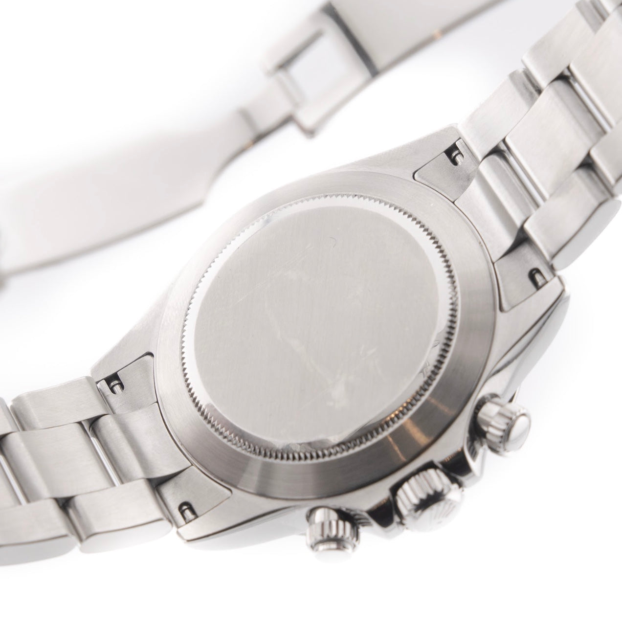 Powered by Rolex’s in-house Calibre 4130 chronograph movement, it combines precision with efficiency, while the tachymeter bezel, screw-down pushers, and 100m water resistance ensure sporty functionality. As the last generation of steel Daytonas before ceramic bezels, the 116520 remains a coveted collector’s piece.
