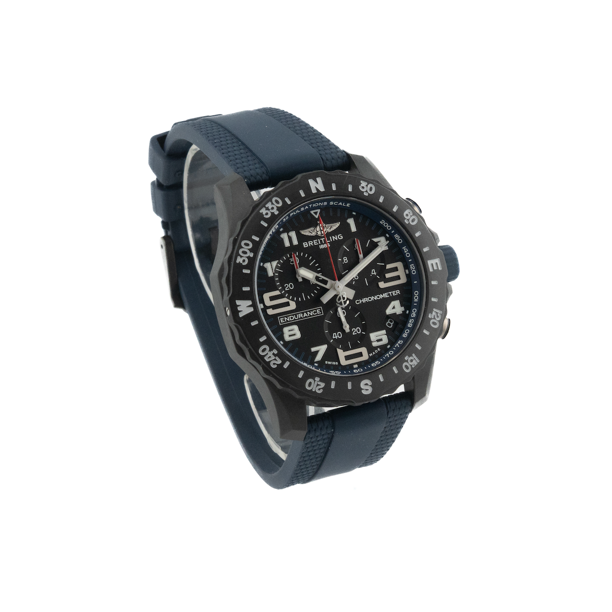 This Breitling Endurance Pro 44mm is designed to be both a lightweight timepiece for athletes and a casual, everyday sports chronograph. The Endurance Pro perfectly blends innovative technology with a vibrant design to produce the ultimate athleisure watch. Featuring an ultra-light Breitlight® case, a robust material 3.3 times lighter than titanium and 5.8 times lighter than stainless steel, the non-magnetic, thermally stable and hypoallergenic Breitlight® is highly resistant to scratches, traction and corrosion. Powered by Breitling’s Caliber 82, this COSC-certified SuperQuartz™ chronograph delivers exceptional precision.