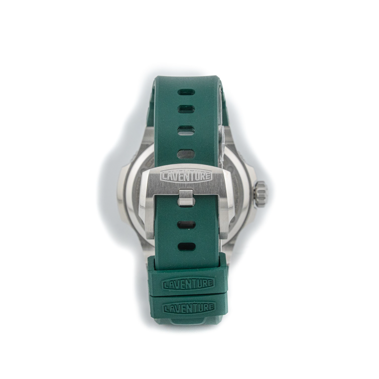 Dial Indicators | The 24-hour numbers and indexes have been fine-tuned to provide more volume and better reading. They are machined from the mass then filled with Swiss Super-LumiNova® Grade X1 green photoluminescent material. |