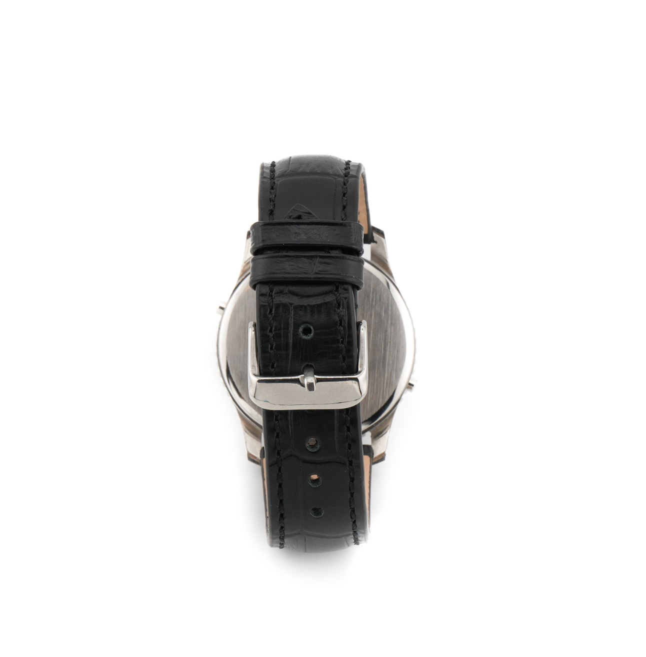 The Breitling Navitimer Chronograph Digital Ref. 9406 is a rare and quirky piece from the late 1970s, blending the brand’s iconic aviation heritage with the digital age. Its bold tonneau-shaped stainless-steel case and integrated bracelet capture the experimental design language of the era, while the combination of an analog dial with twin digital displays set it apart as a true hybrid. The watch provides both classic chronograph functionality and practical digital features such as calendar and stopwatch, making it a pilot’s tool with a futuristic twist.