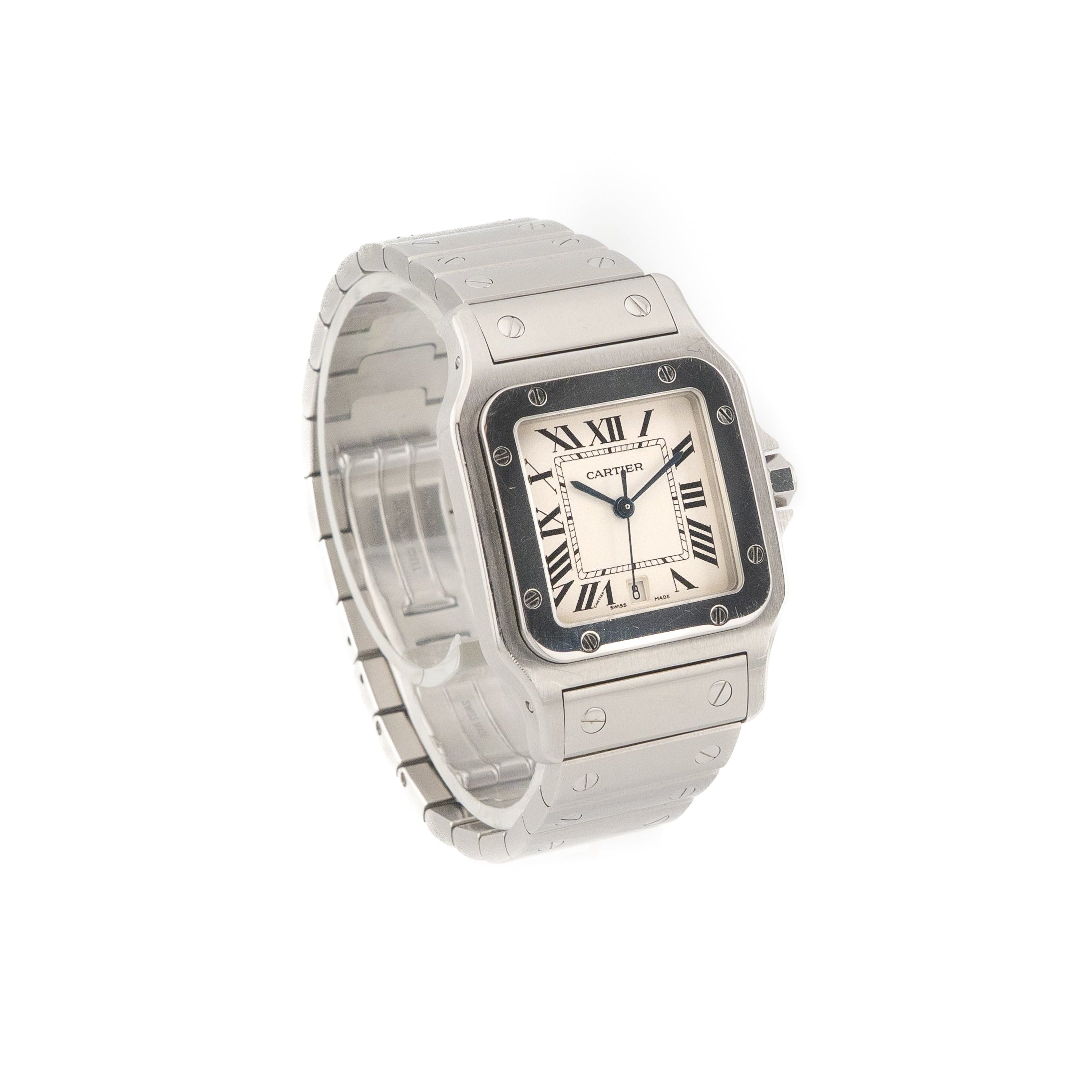 The crisp dial features bold Roman numerals and Cartier’s signature blue sword hands, paired with a practical date window for everyday functionality. Powered by a reliable quartz movement, this Santos delivers precise timekeeping with effortless ease. Chic, timeless, and versatile, it’s a watch that transitions seamlessly from daily wear to formal occasions while making a statement of classic sophistication.