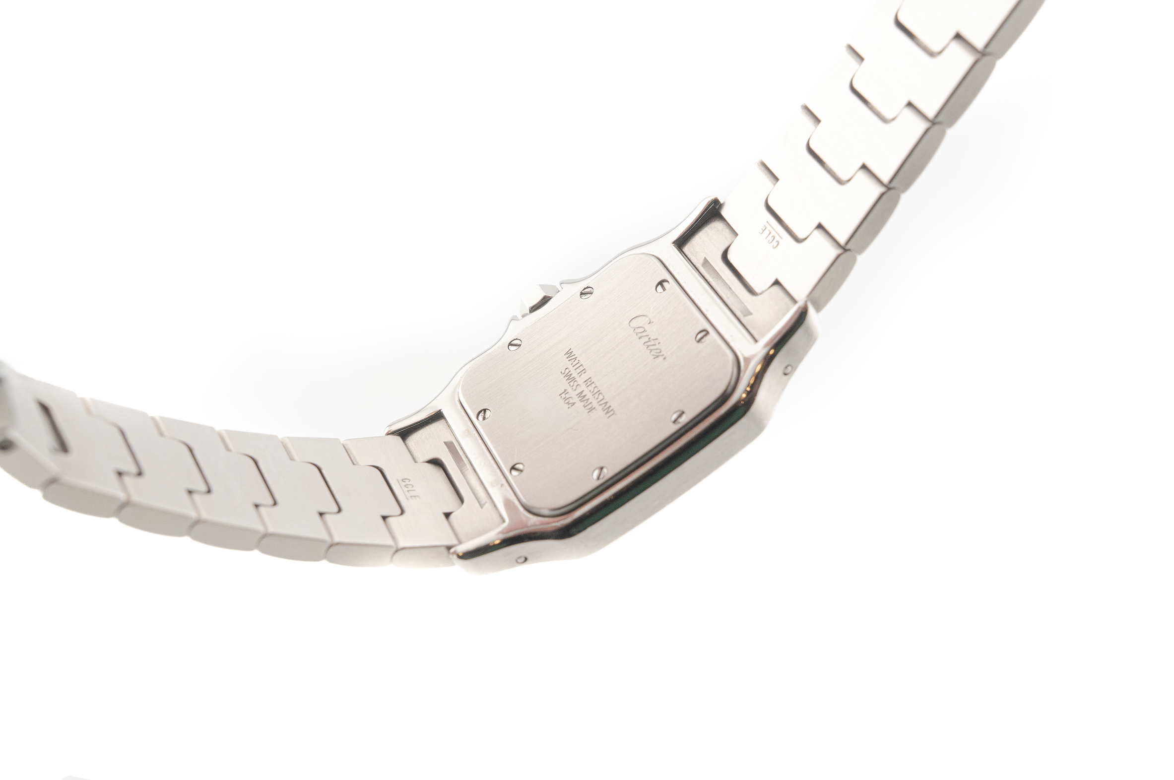 The Cartier Santos De Cartier is a perfect blend of heritage elegance and everyday versatility. Its sleek stainless steel case showcases the iconic square proportions and exposed screws that have defined the Santos line for over a century, giving it an instantly recognisable presence on the wrist.