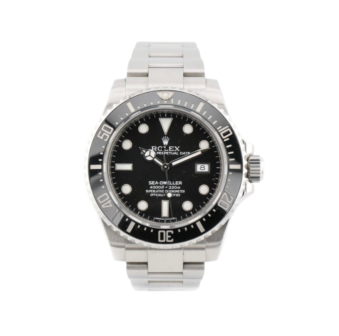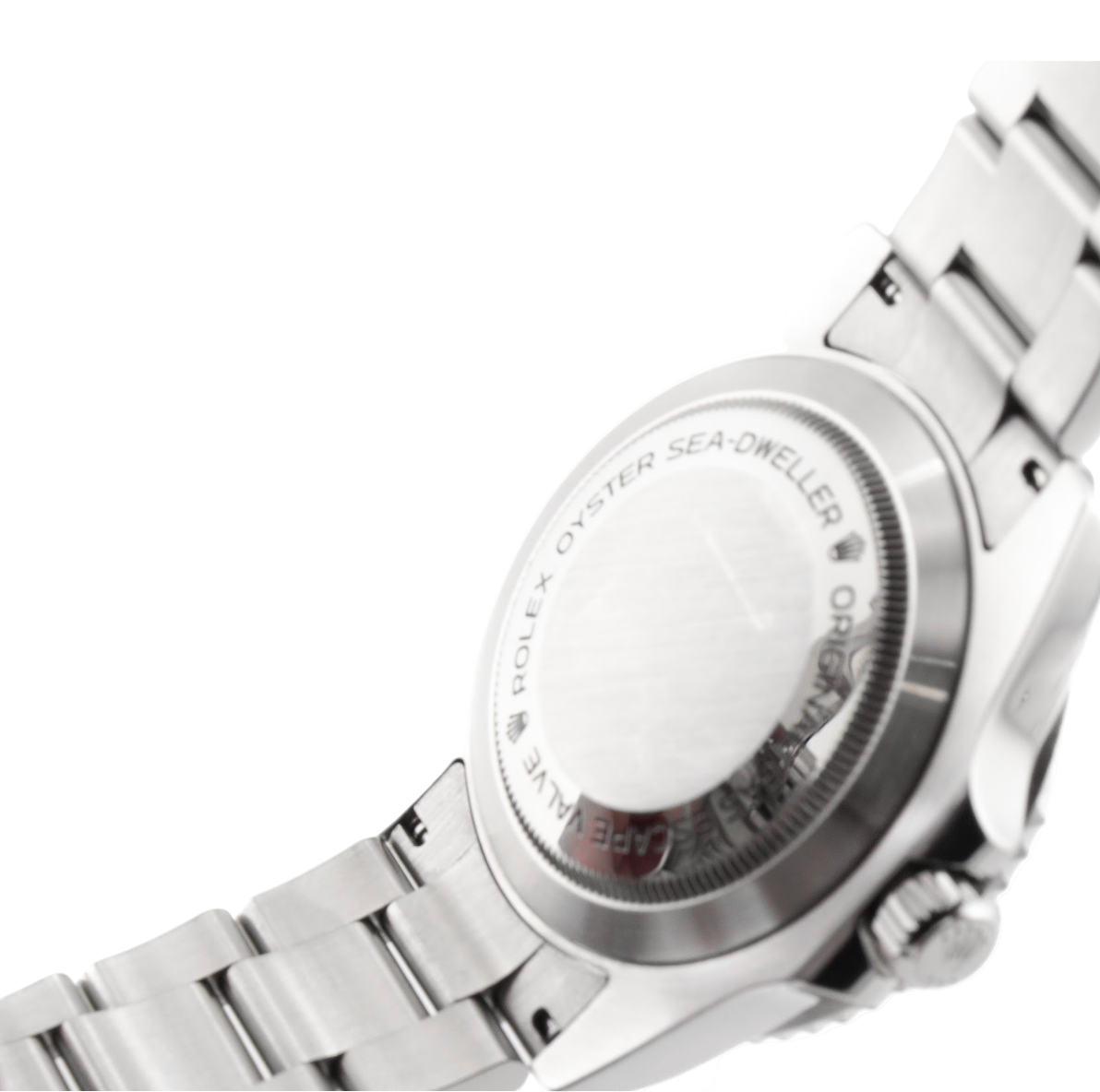 The Rolex Sea-Dweller 4000 (2014) represents the perfect balance between classic dive watch heritage and modern Rolex engineering. With a 40mm Oystersteel case, it revives the iconic proportions of earlier Sea-Dweller models while introducing contemporary advancements such as the Cerachrom ceramic bezel insert and Chromalight luminescence for long-lasting legibility underwater.