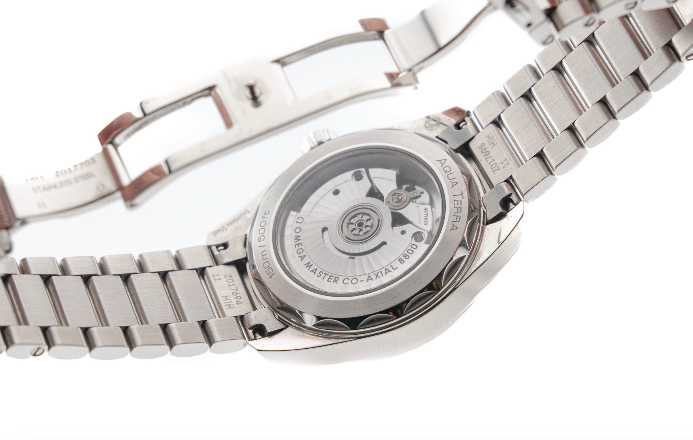 The Seamaster Aqua Terra is a superb tribute to OMEGA’s rich maritime heritage. This 38 mm model, has a symmetrical case and crown in fully polished stainless steel and a wave-edged design featured on the back.