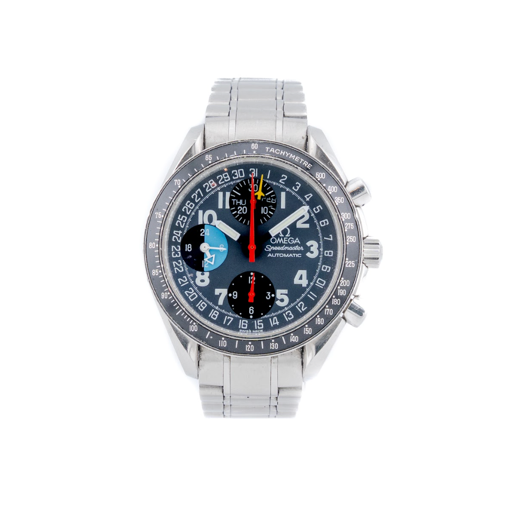 Powered by a reliable automatic chronograph movement, this Speedmaster Reduced combines classic chronograph functionality with playful, eye-catching style — a perfect choice for collectors and enthusiasts who appreciate both performance and personality on the wrist.