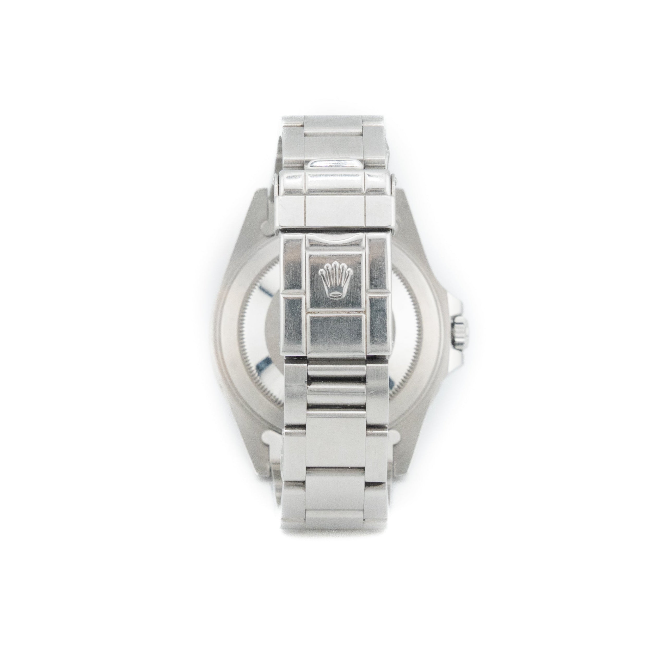 The Vintage Rolex GMT-Master II “Pepsi” (1998) is an iconic travel watch that captures the golden era of Rolex sports models. Housed in a classic 40 mm Oystersteel case, it features the instantly recognisable red and blue aluminium “Pepsi” bezel, originally designed to distinguish day and night hours and now prized for its timeless character and potential patina. The black dial is clean and highly legible, with luminous hour markers, Mercedes hands, and a red GMT hand that allows the wearer to track a second time zone independently — a defining feature of the GMT-Master II. Powered by a reliable automatic Rolex movement and paired with the robust Oyster bracelet, this 1998 example blends tool-watch functionality with enduring style, making it a highly sought-after piece among collectors and travellers alike.