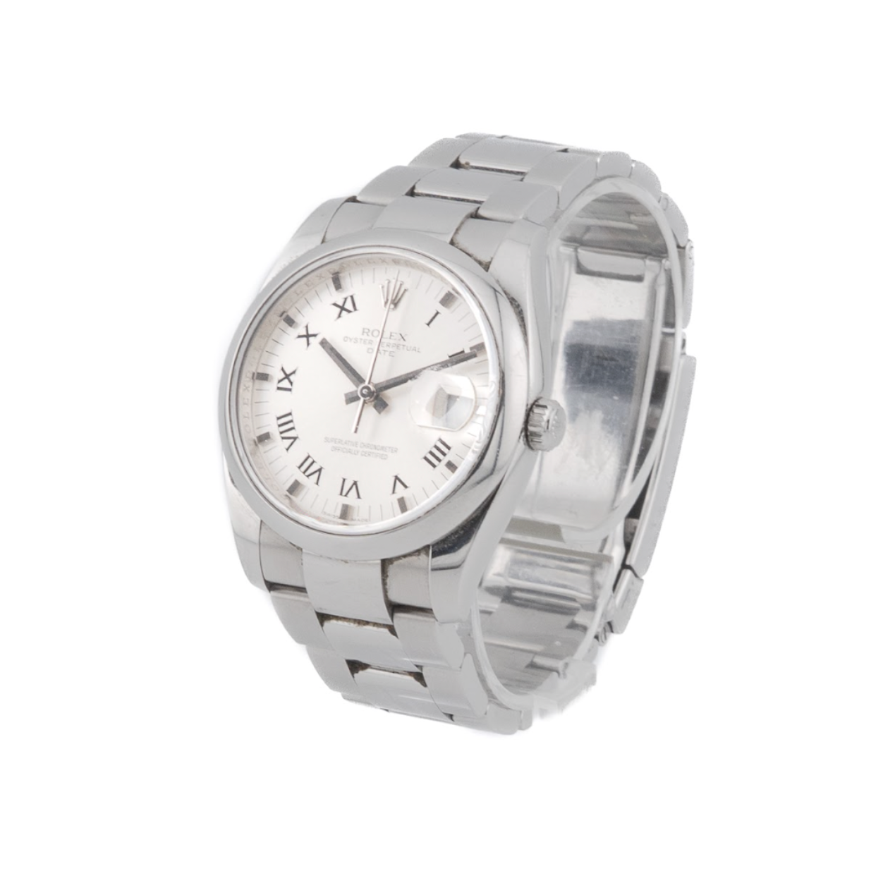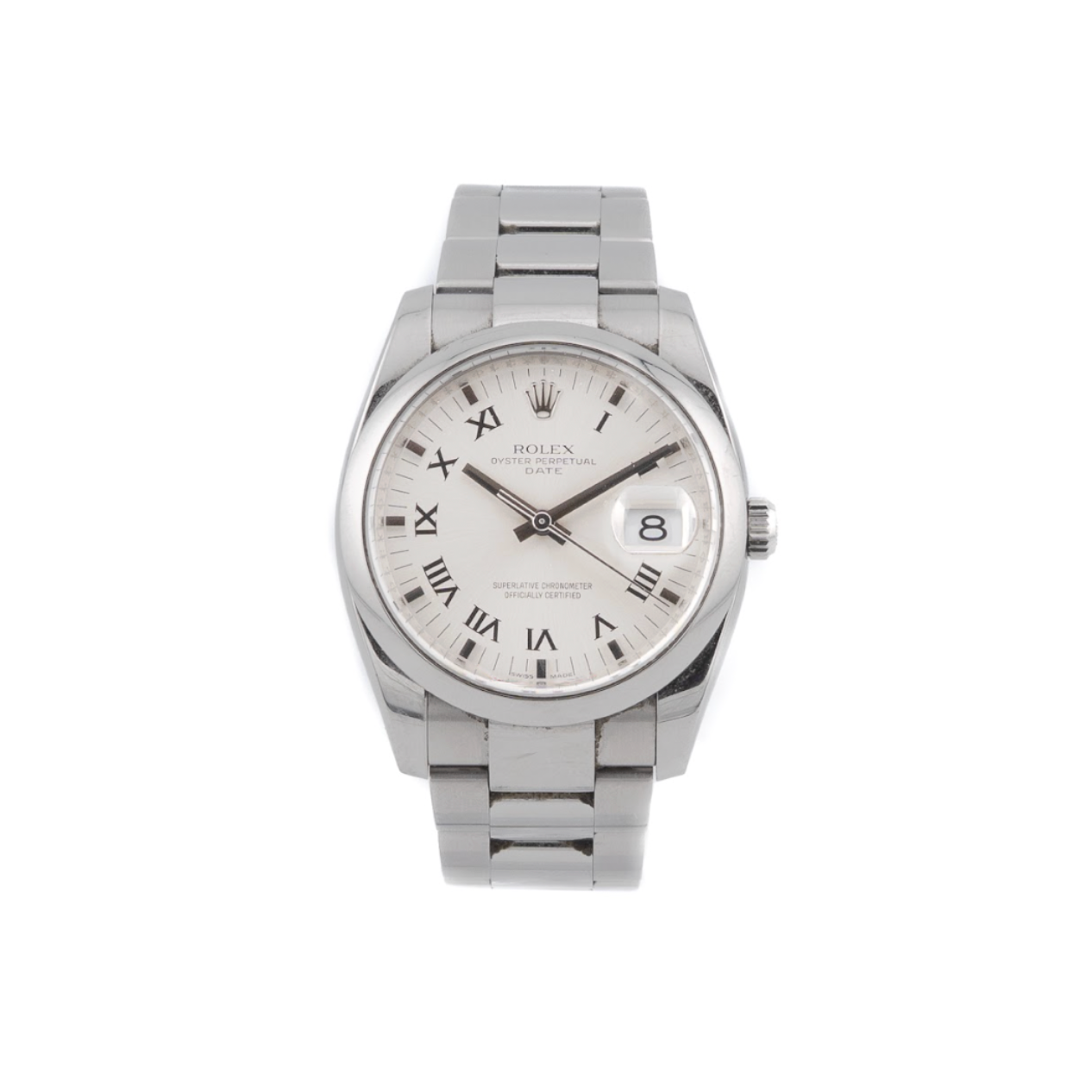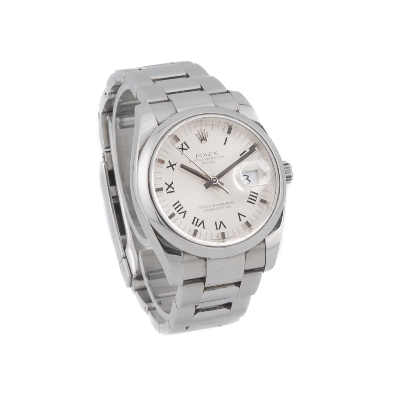Discover the Rolex Oyster Perpetual Date in silver — a quintessential example of Rolex's timeless design and enduring quality. The 34mm stainless-steel case balances presence and wearability, while the silver dial with Roman numerals brings refined elegance and traditional charm.
